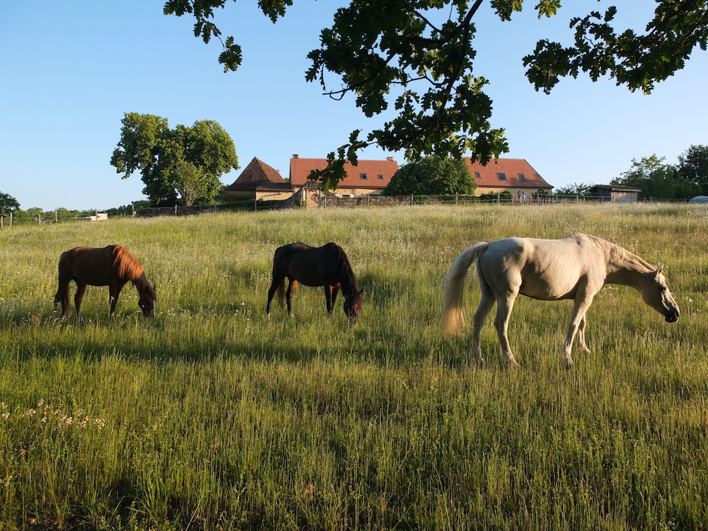 Un ancien corps de ferme tout de pierres vêtue, au sommet d’une colline, dix hectares de prairies entourés de bois de chênes, lieu-dit nommé « Le Castanet ».